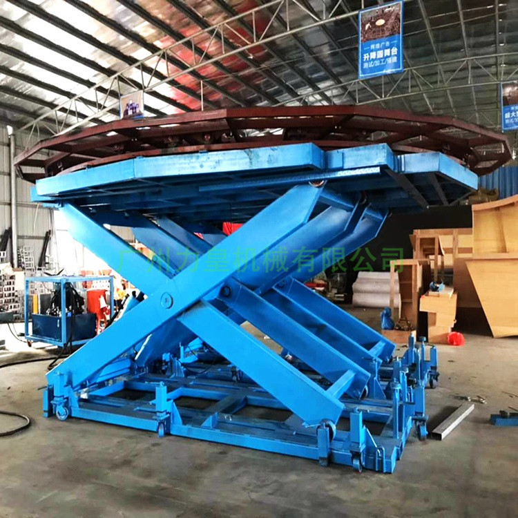 主要部件:上下框架、剪叉臂、横梁、油缸、旋转框架、旋转系统、滚轮、旋转轨道、液压站、电控箱等