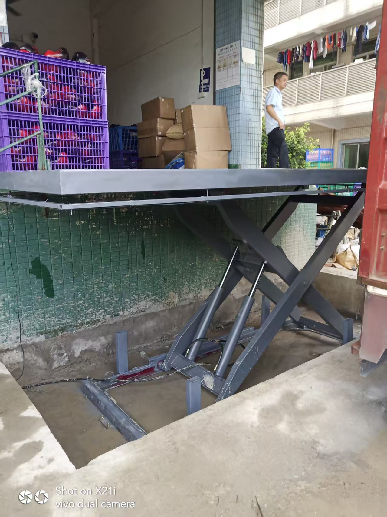 2、升降高度稳定性,能满足大吨位货物平稳举升.设有防附,超载安全保护的液压系统,保障运行安全