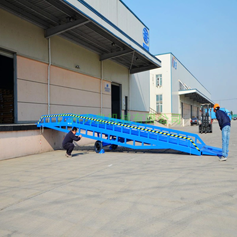移动式液压登车桥移动式液压登车桥移动式液压登车桥移动式液压登车桥是与叉车配合使用的货物装卸辅助设备,可根据汽车车厢的高低调节高度,叉车可以直接通过本设备驶入车厢内部进行货物的批量装卸,仅需单人作业,即可实现货物的快速装卸。它使企业减少大量劳力,提高工作效率,获取更大经济效益。
